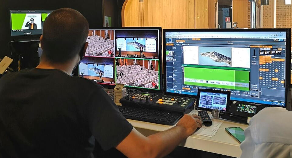 Como un director de orquesta, Automate VX utiliza las señales de los micrófonos para coordinar las cámaras y optimizar la imagen en pantalla.